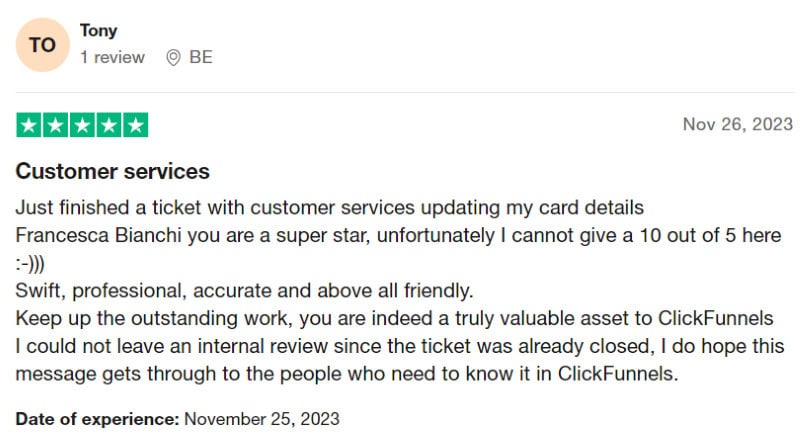Interestingly, another user slammed the customer support in a 1-star ClickFunnels review. They said it took 3 days to sort out an issue with the verification process for their domain.